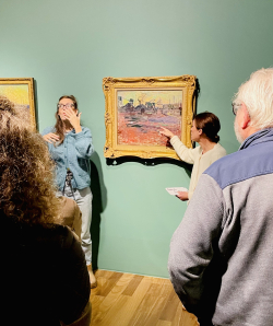 Une médiatrice et une interprète en LSF - Langue des Signes Française - s’associent le temps d’une visite pour proposer une transcription bilingue de l’exposition en cours.