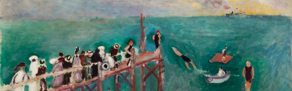 Raoul Dufy, retour au Havre « Né au Havre, Raoul Dufy (1877-1953) s’en éloignera mais restera toujours profondément attaché à cette ville qui a marqué, avant lui, d’autres peintres comme Eugène Boudin ou Claude Monet. Dans un style immédiatement reconnaissable, avec cette manière si particulière de disjoindre trait, forme et aplats de couleur, Dufy ne cessera de réinterpréter, tout au long de sa vie, certains motifs observés en Normandie: le port, la plage, la jetée, les bateaux, les baigneurs, le casino... »