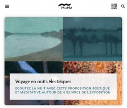 A partir de son smartphone ou de sa tablette, le visiteur peut, au MuMa, bénéficier gratuitement de parcours audioguidés. A l’occasion de l’exposition Nuits électriques, ce sont deux parcours qui ont été imaginés, à la fois très différents l’un de l’autre, mais aussi complémentaires… Chacun pourra librement opter pour l’un ou pour l’autre ou… pour les deux !