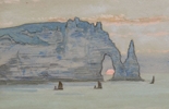 Like his great Impressionist elder, Auburtin painted Belle-Ile and Étretat before succumbing to the charm of Varengeville-sur-Mer. The little village south of Dieppe held strong appeal for artists, writers and musicians for nearly a century, from 1850 to 1950. Auburtin, like Georges Braque later, chose the village to build a house and studio. In 1907, he began painting the majestic cliff-lined seascapes on a daily basis. He tirelessly walked the coastal paths, but also set up his easel on the edge of the woods and often painted facing the sun. His backlit marine paintings show him to be a keen observer of changing weather conditions. His determination to understand the landscape and fluctuations of light can be seen in the development of series, a process he borrowed from Monet as much as from the great Japanese print masters. Like a French Hokusai, Auburtin excelled in the technique of gouache and watercolour. With great dexterity he captured on paper the most extraordinary and most picturesque viewpoints of the Normandy coastline.