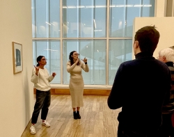 Une médiatrice et une interprète en LSF - Langue des Signes Française - s’associent le temps d’une visite pour proposer une transcription bilingue de l’exposition en cours.