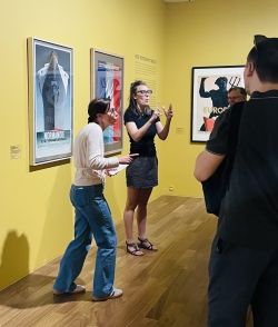 Une médiatrice et une interprète en LSF - Langue des Signes Française - s’associent le temps d’une visite pour proposer une transcription bilingue de l’exposition en cours.