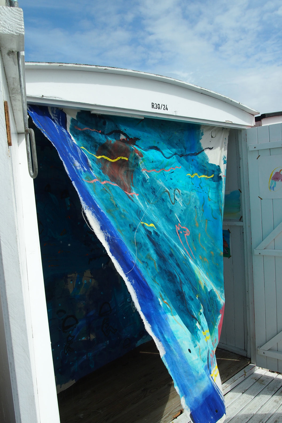 « Nous avons monté le projet Première ligne en septembre 2018 au Havre. Sur la plage, l’une des nombreuses cabanes de la dernière ligne «30» digue nord (exactement en face du poste de secours 2), s’est transformée en lieu de création et d’exposition.