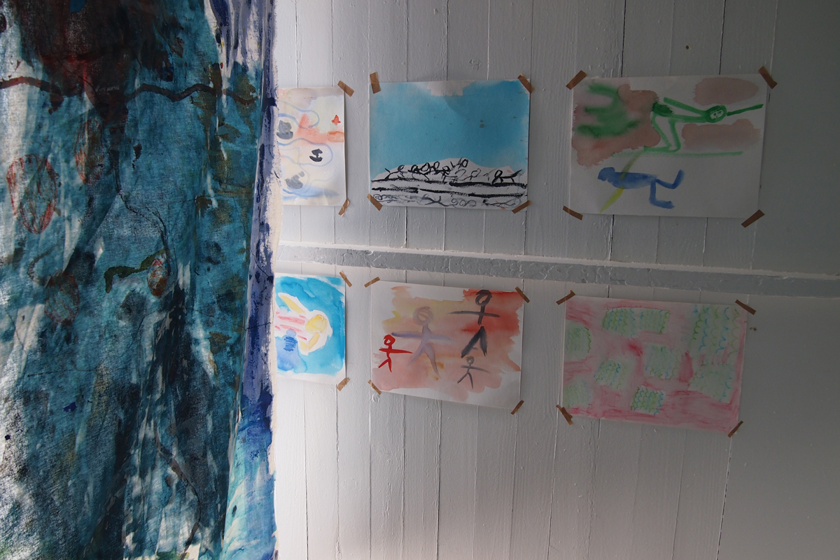 Habillée de toutes les créations des enfants (peintures et aquarelles) la cabane Première ligne est devenue un lieu d’exposition aux couleurs de Dufy : des bleus, des bleus et encore des bleus…