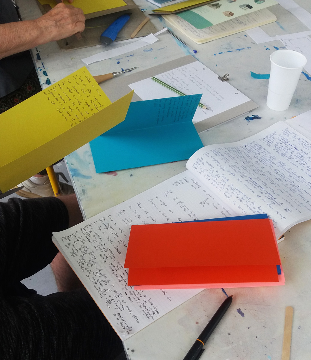 A l’issue de l’écriture, les textes ont été rassemblés sous forme de mini-éditions individuelles, façonnées à la main pour opérer un « City Tour (littéraire!) » du Havre.