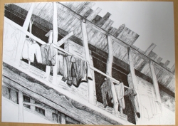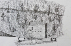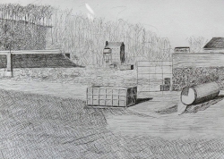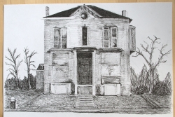 Ce sont les stigmates de cette histoire économique, mais aussi sociale et culturelle, que François Trocquet cherche à transcrire dans le travail de dessin qu’il entame là-bas. Comme à son habitude armé de son seul stylo à bille (ou presque), il produit plusieurs dizaines de travaux qui montrent une ville dont l’apparence même a été marquée par cette histoire particulière. Les habitations autrefois cossues prennent des allures de ruines, les buildings rutilants du centre semblent laisser place à d’immenses friches… S’esquisse au gré du travail de l’artiste comme le portrait d’une ville fantôme, à l’intérieur de laquelle l’esprit peut vagabonder et se rappeler ces films qui façonnent notre image d’une Amérique loin de cette réalité brutale que vivent certains de ses citoyens.