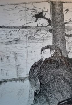 François TROCQUET (1959), L'étranger, 2016, Stylo bille et feutre sur papier japon. © François Trocquet