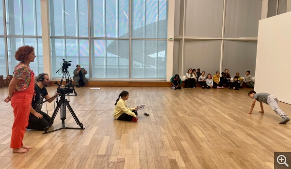 Tandis que se préparaient les futurs Spielberg, deux autres classes ont pris possession du musée grâce à quelques pas de danse aux côtés de la chorégraphe Solenne Pitou. Accompagnés de la danseuse, les élèves explorent les notions de rythme, de mouvement de couleurs, d’abstraction en danse. Des interventions toujours dans le musée, face aux œuvres, et basées sur l’improvisation ! Les voilà en chaussettes, tentant leurs plus belles figures dans la vaste nef transparente. Tandis qu’un élève décrit ce qu’il voit sur le tableau, son binôme tente de reproduire en danse ce que l’autre voit. Tout ceci a été filmé par Alexandre Xenakis lors de certaines séances. Le film qui compile ces moments émouvants sera projeté les 11 et 14 juin au musée.
