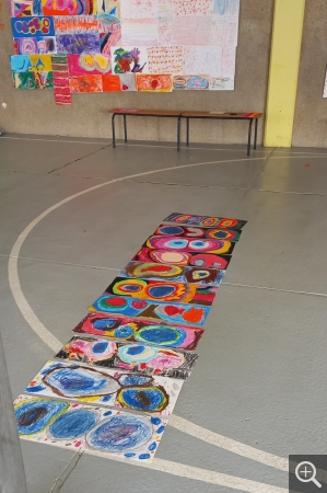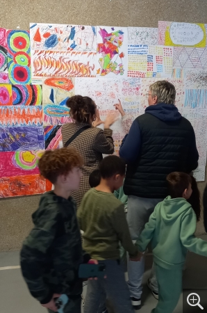 Chacune des 4 classes de CP de l’école Jehan de Grouchy a ainsi pu bénéficier d’une visite de l’exposition, et de 6 ateliers de pratiques artistiques. Ainsi, entre février et mars 2024, les élèves ont pu explorer de multiples manières les champs de l’abstraction.
