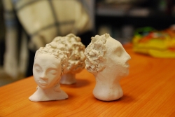 Après avoir admiré les sculptures de Charles Cordier, on essaie à notre tour de modeler une petite tête. Le plaisir est garanti, mais pas le résultat…